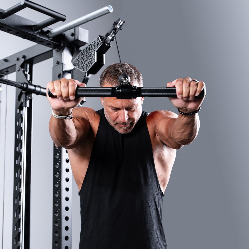 Whether you’re locking in heavy barbell squats or dialling in form on bench press, the C20’s commercial-grade Smith Machine brings that real gym feel home. Built to IPF and IWF standards with medium knurling and smooth travel, it’s perfect for controlled lifts. The front section of the trainer doubles as a half rack, equipped with upgraded J-Hooks and Spotter Arms for safe, confident barbell training.