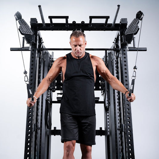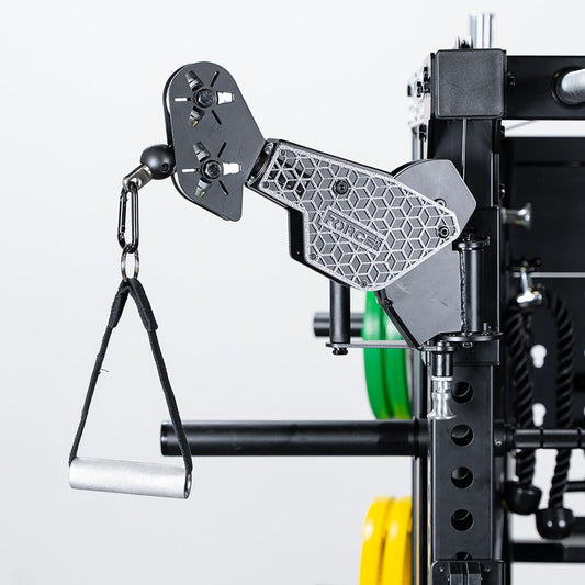 This machine comes with aluminium pulleys for a smoother, longer-lasting performance rep after rep. Included attachments like an EZ Curl Bar, Lat Pulldown Bar, Tricep Rope, Triangle Row Handle, Ankle Cuffs, and more ensure you’re ready for any workout. Plus, the magnetised landmine attachment stores easily, adding yet another dynamic training element to your arsenal.