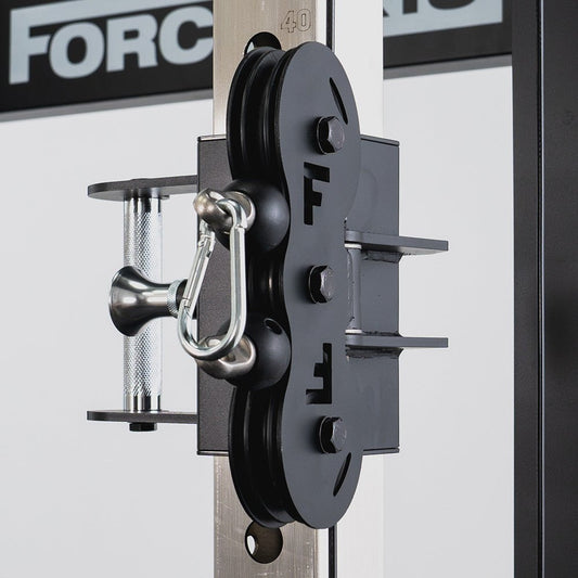 The Force USA X15 Pro offers a selectable cable pulley ratio of 2:1 or 1:1. With 100 lb loaded, you'll experience 50 lb resistance at the 2:1 setting, and full 100 lb resistance at the 1:1 setting.