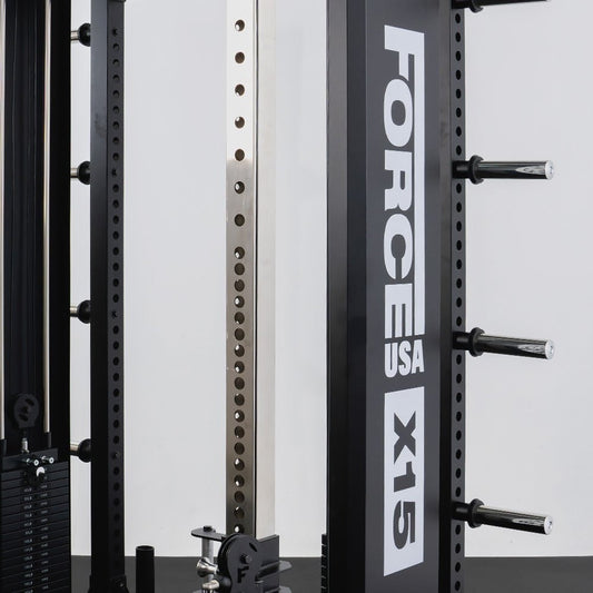 The Force USA® X15 All-In-One Trainer is an all-encompassing fitness solution, bringing together nine different workout stations. Whether it's the Half Rack for heavy squats, the Functional Trainer for precision cable exercises, or the Landmine for explosive power moves, the X15 has it all. This versatility allows you to execute a wide variety of exercises, all within the same machine, making it an essential asset for any serious strength training regimen.