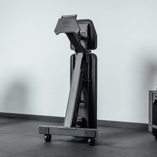 At just 40 kg (88 lbs), the Nighthawk™ is lighter than many benches in its class, making it easy to manoeuvre with its knurled front handle and integrated transport wheels. When not in use, it stores upright securely thanks to a rubber-coated storage post, maximising space efficiency.
